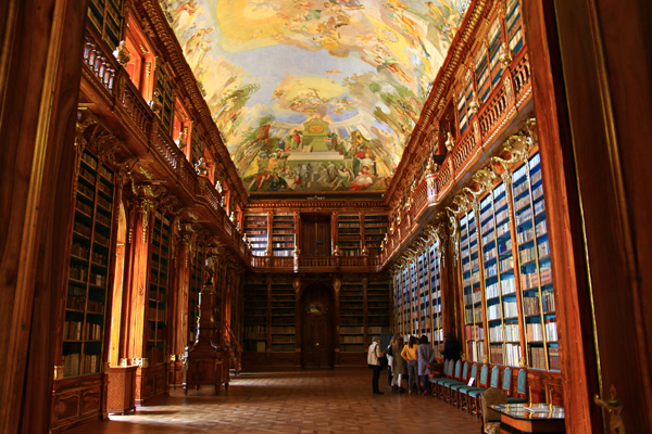 いきなりハイライト、「世界一美しい」と言われるプラハのストラホフ修道院。