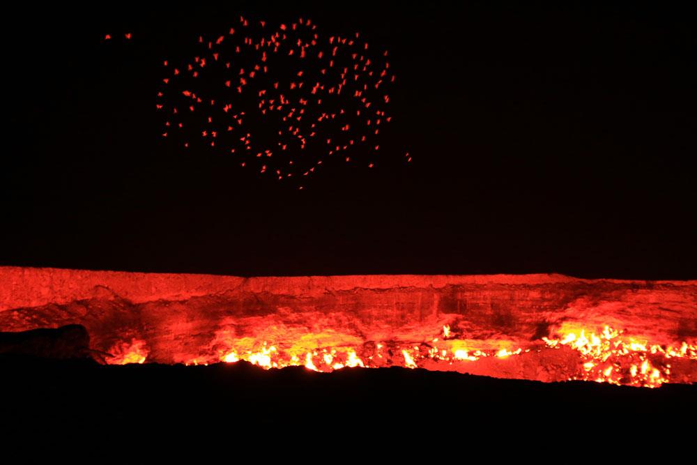 地獄の門から火の粉が舞ってる!と思ったら鳥だった!