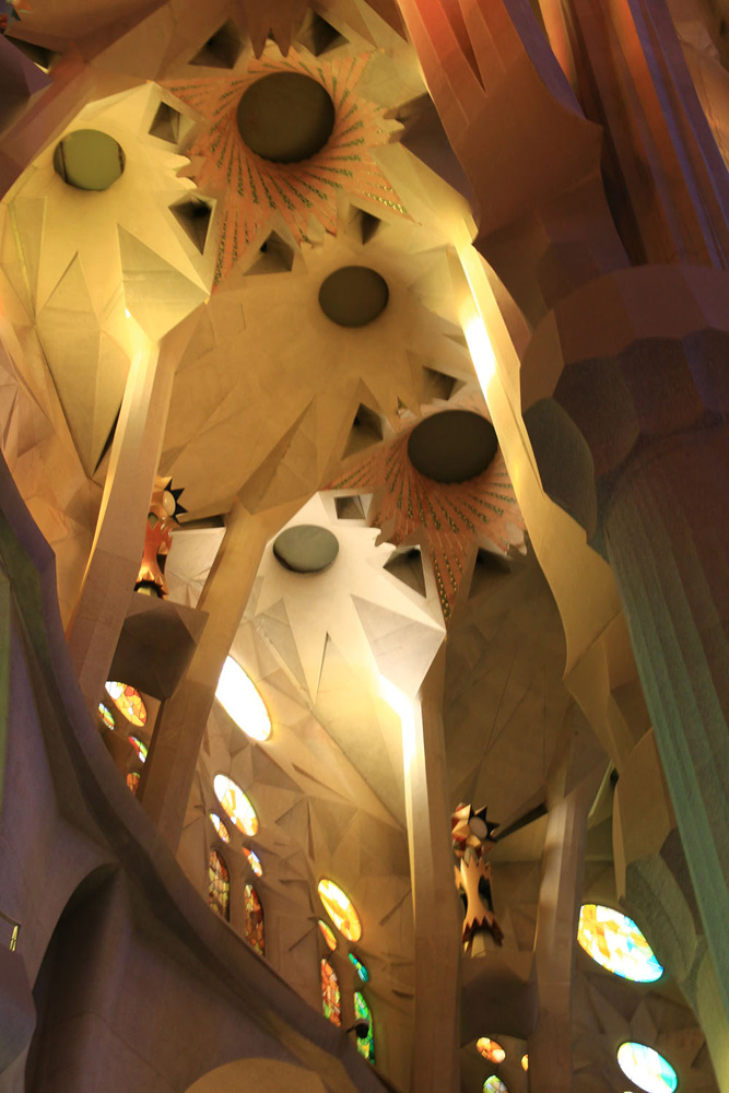 天井はものすごく高いし、柱1本1本は単純にまっすぐ天井に向かってない。