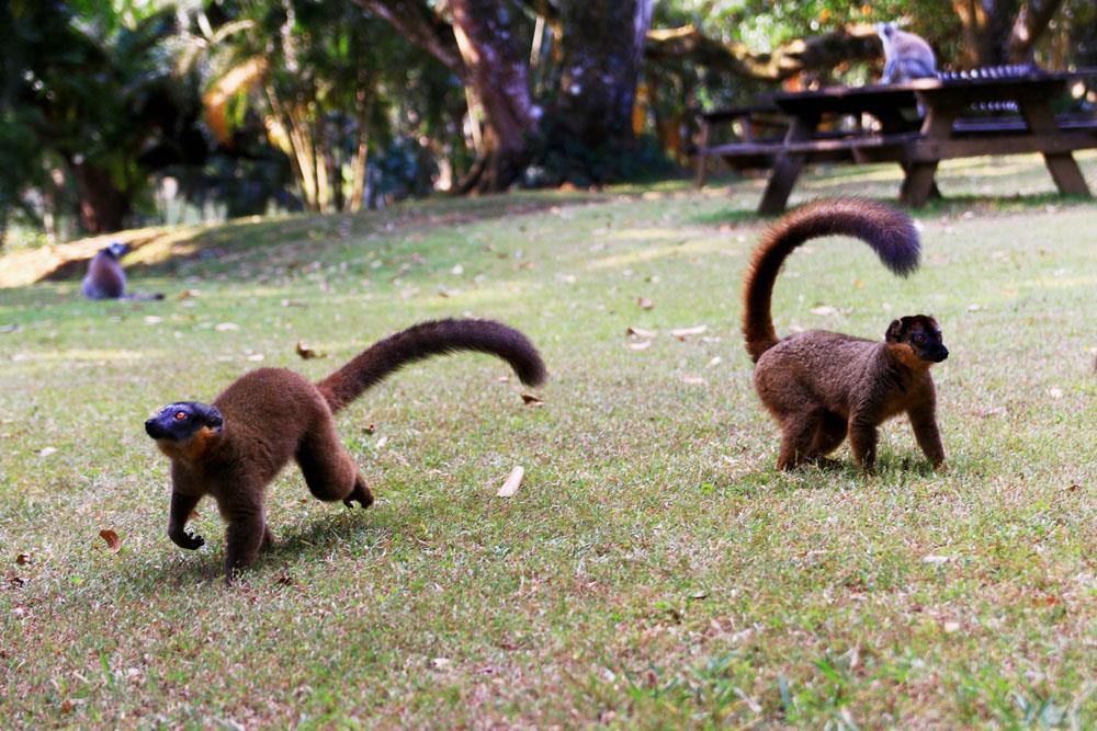 入園5分でテンションが上がりまくりの2人!!もっと見てたかったけど、ガイドさんが園内を案内してくれるというので、キツネザルとはお別れ。ここで昼間に見れるレミュー?キツネザル?は4種類。ワオキツネザル・シファカー・ブラウンレミュー・バンブーレミュー。さっそく2種類見れちゃった!